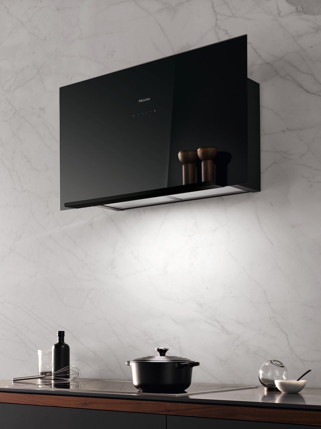 Fali páraelszívó függőleges üveglappal, és különösen lapos designnal a nagyobb helyért a fejnek.