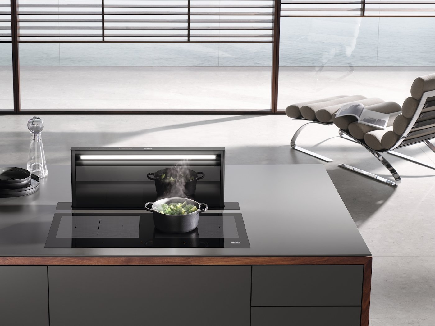 Downdraft páraelszívó elegáns obszidiánfekete kivitelben és intuitív SmartControl kezeléssel